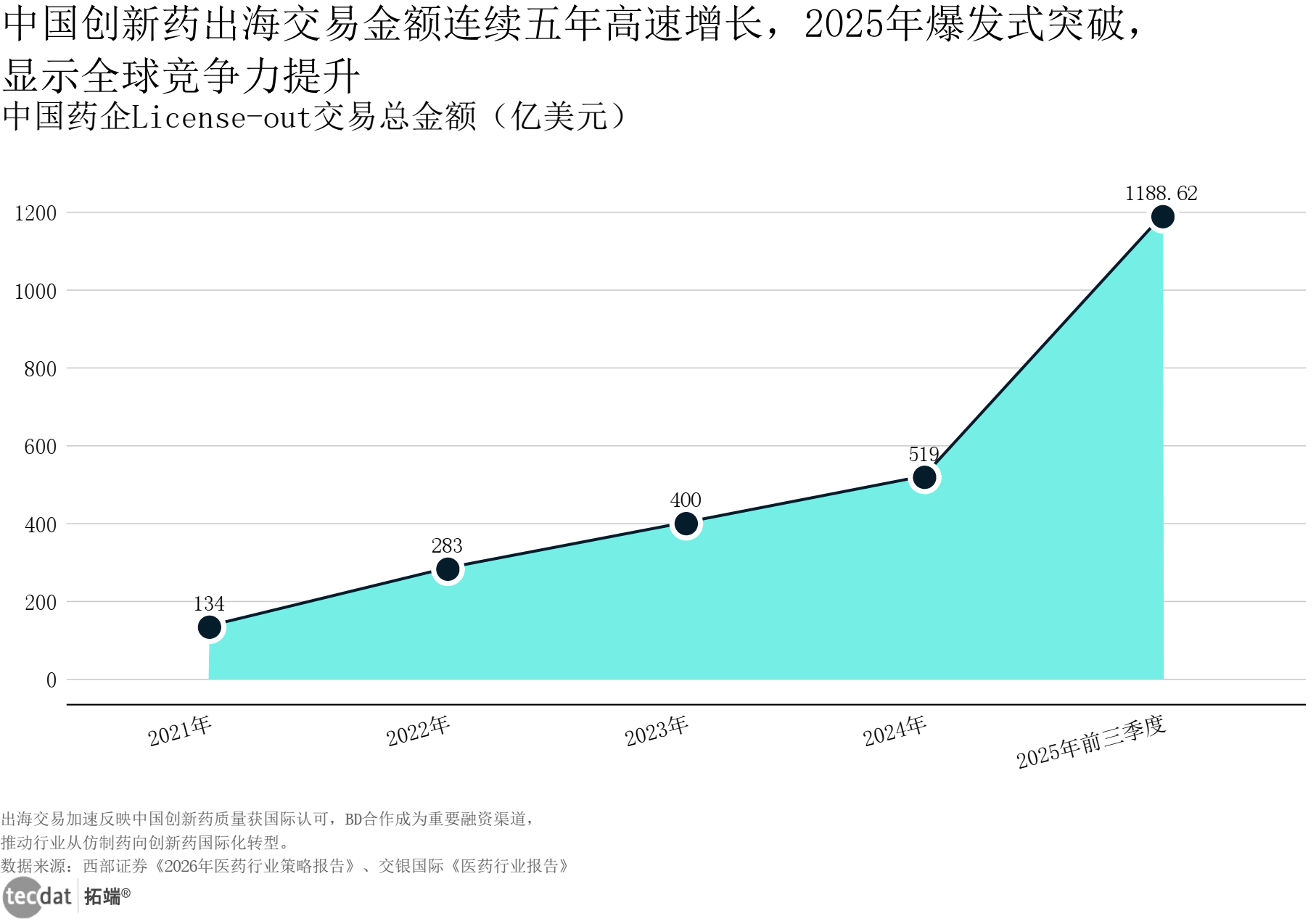 中国立异药出海买卖金额变化折线数据EXCEL及图表PDF模板已分享到会员群医药健康立异企业集中正在立异药取医疗器械范畴。