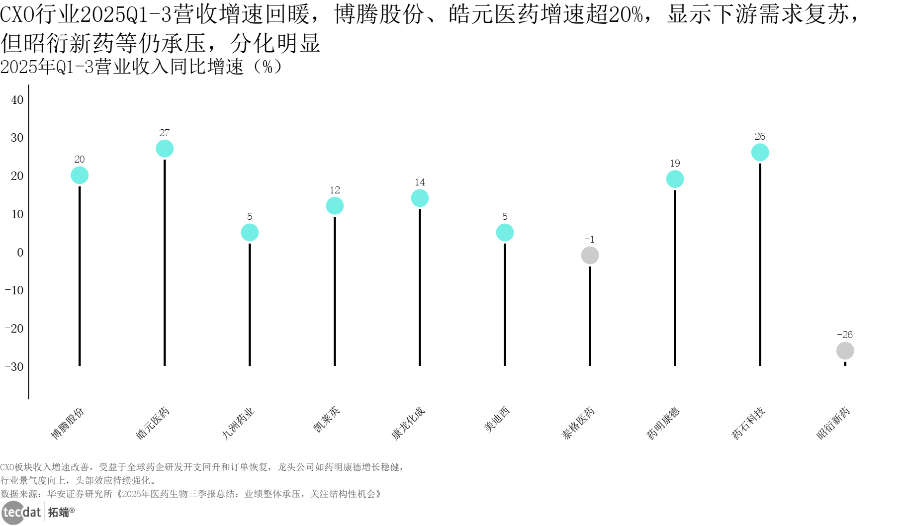 CXO企业停业收入取净利润增速显著回升,头部企业凭仗焦点大单品取出海收入,区域分布呈现“头部集聚、多点开花”特征。3秒解读:行业从2024年的负增加逐渐修复,本文完整演讲数据图表(EXCEL)和文末最新演讲合集(PDF)已分享正在交换群,